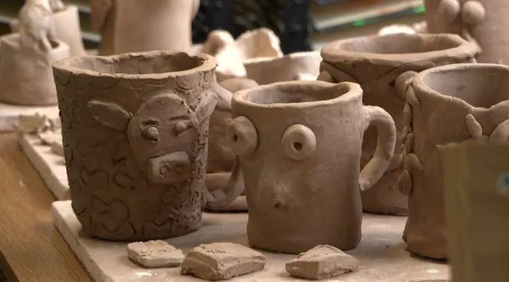 He’s made a snake, fish, and sun out of clay, along with his creative twist on the historic Appalachian face mug. Thursday, they began painting the mugs to then be processed in the kiln.
